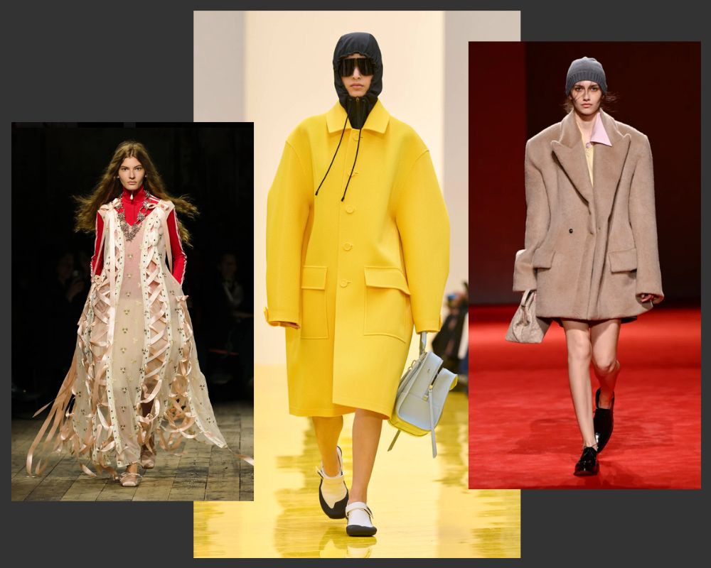 Volume was one of the most visible silhouette shifts of the season. Designers embraced bubble skirts, balloon trousers, oversized blouses and dramatic draping, replacing body-con silhouettes with architectural shapes. This movement toward playful proportion and movement appeared across the four fashion capitals.
