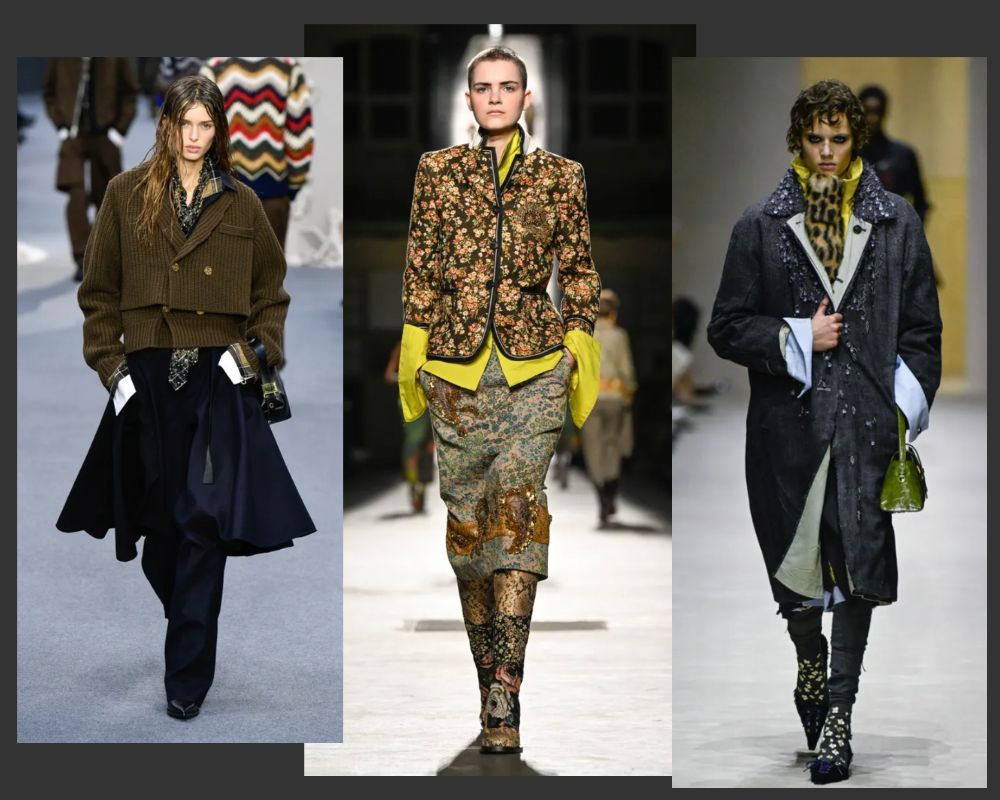 Perfect polish took a backseat this season as designers embraced deliberate imperfection. Shirts were half-tucked, layers misaligned, and garments appeared twisted or slightly off-kilter. This wasn’t careless – it was calculated. The aesthetic suggests a move toward humanised dressing, where individuality overrides traditional notions of refinement.