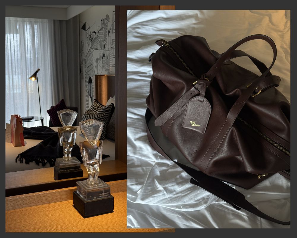 My travel MVP? The R.M. Williams Alice Weekender bag. It quickly became my lifeline – big enough to carry my tripod, sleek enough to move between appointments with ease. I was bouncing from location to location before check-in, and it kept up with me every step of the way.