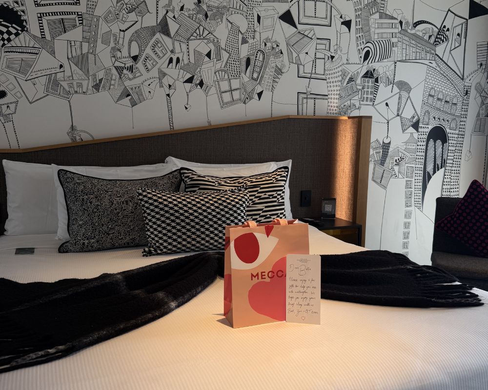 I was welcomed at concierge and guided through to my Gallery Harbourview King Room, one of just 81 individually designed rooms in the hotel – each tailored to feel completely unique. When I opened the door, I was greeted by a MECCA package waiting on the bed, filled with travel essentials thoughtfully organised by the staff.